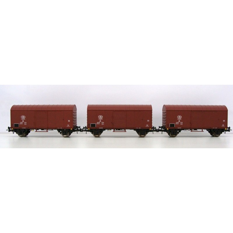 B-Models 45704 Set A 3x gedeckter Güterwagen Glms braun SNCB Ep.III