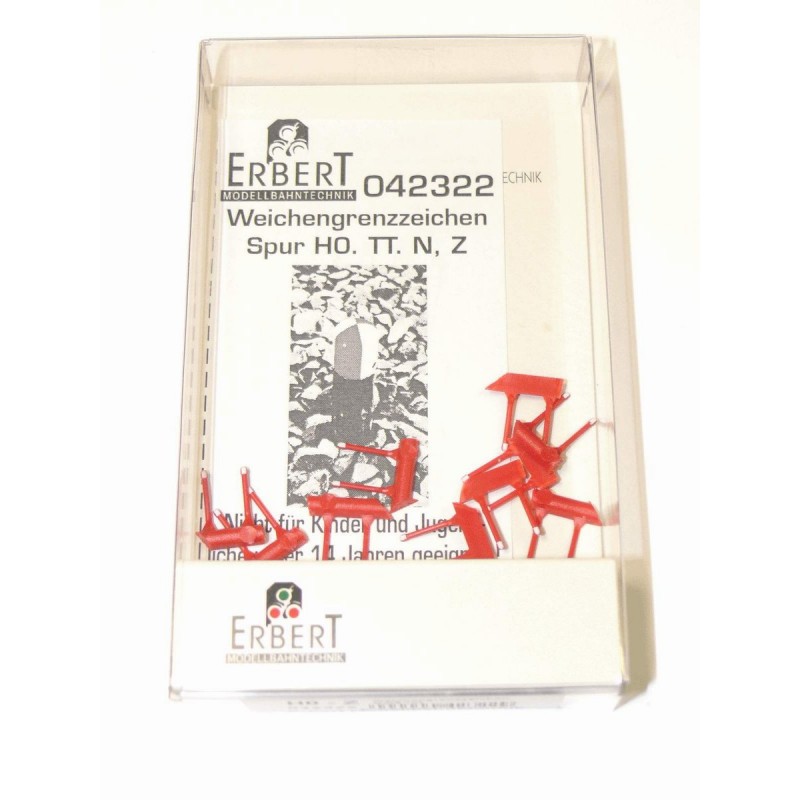 Erbert 042322 - Weichengrenzzeichen farbig 20 Stück H0-TT Abbildungen können abweichen. Deko und Zubehör auf Fotos nicht enthalten. Dieser Artikel ist für Personen ab 15 Jahre geeignet und kein Kinderspielzeug. Lieferdauer: 10-14 Tage