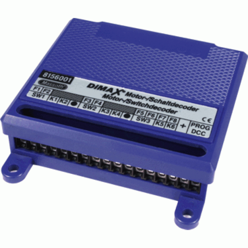 Die Einstellungen des Schaltdecoders erfolgen natürlich per CV-Programmierung und können in der Regel über jedes Digitalsystem durchgeführt werden. Zusätzlich unterstützt der DiMAX Schaltdecoder direkt das POM-Verfahren, das beliebte Programmieren auf dem Fahrgleis (Program on Main). Natürlich können auch reguläre Spulenweichenantriebe (2- und 3-Draht) mit Impulsschaltung oder auch echte Motorweichenantriebe realistisch geschaltet werden.